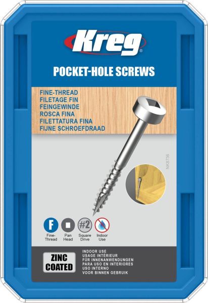 Kreg Screws are specifically designed to hold your pieces together to create a strong, long-lasting joint. Zinc screws are recommended for a wide variety of indoor projects where moisture is not a concern.