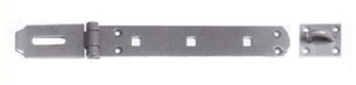 300mm Heavy Pattern Hasp and Welded Staple. The staple is made from hardened carbon boron steel and welded into the fixing plate. It is also rounded to deter sawing and the hasp is fully spun rivetted both ends to prevent removal.