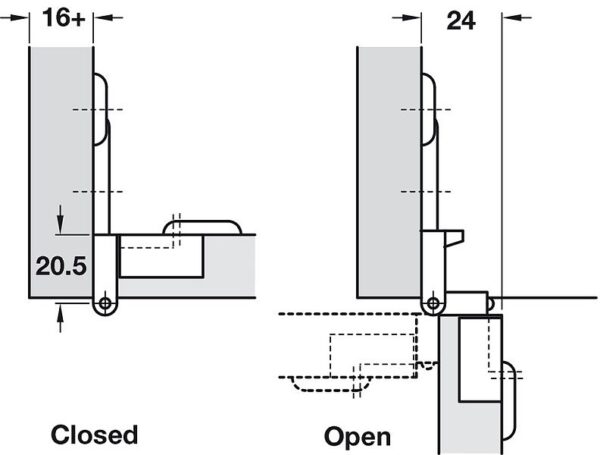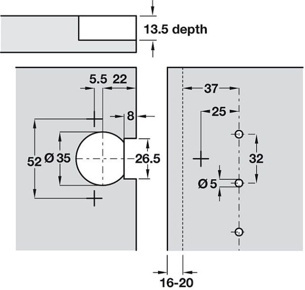 For one inset door, side panel mounted Screw fixing, 52/5.5