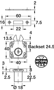 Roller shutter rim lock, Diam: 18 mm cylinder, 24.5 mm backset