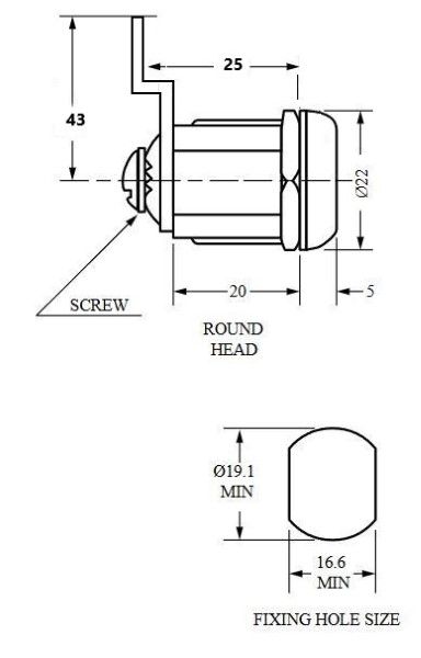Nut fixed camlock. 20mm body length. 1/4 turn clockwise. 43X5mm Cranked cam. Supplied with 2 keys.This item is available whilst st… + More