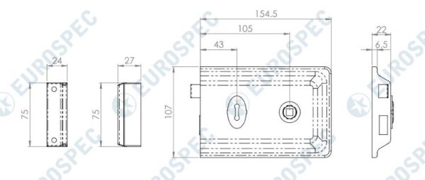 EUROSPEC RSE8064PB Rim Lock 155x105mm Polished Brass