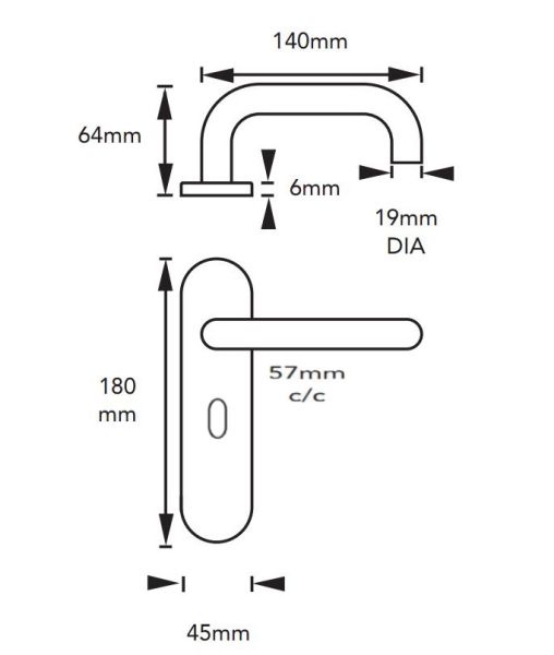 H: 180mm x W: 45mm x DIA: 19mm x Handle: 57 c/c