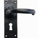 Lever Furniture on lock backplate.Size: 150mm x 50mmFinish: Antique Black.