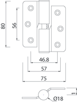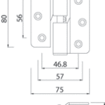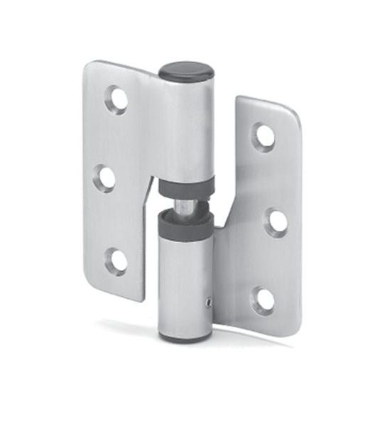 Gravity hinge RH 80mm for 13 + 20mm boards. Can be adjusted on site to hold open or hold closed. Fixings supplied separately. Satin stainless steel.