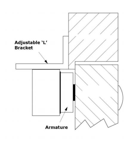 Slim Line L Bracket for 261-000 electro mag. To suit outward opening doors. SAA.
