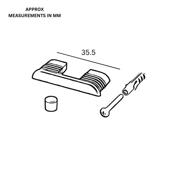 Allows alfer coaxis to be fastened to walls. Includes 2 x End Caps for 35.5mm rail, 3 x Black drill caps and 2 x round head steel screws x 40mm