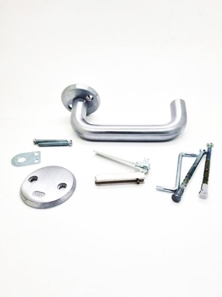 Lever on sprung rose with blind rose. Complete with bolt through fittings and spindle. SCP finish.
