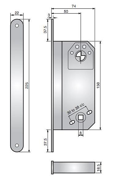 +MODULAR SASHLOCK 50mm R/HAND SCP. Requires Split Spindle. Function – Outer lever retracts latch – inner retracts latch and deadbolt. Cylinder throws deadbolt and retracts latch and deadbolt.