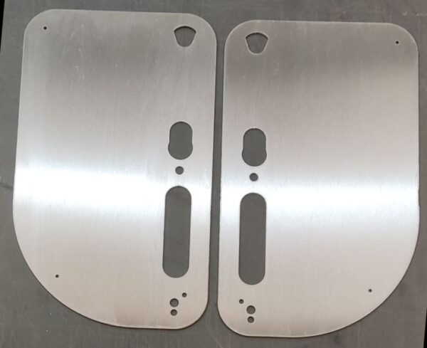 Lock-Tech cover plate. Plate to sit behind Salto XS4 Narrow to hide marks from previous door furniture etc. 180mm wide. Satin stainless steel finish.