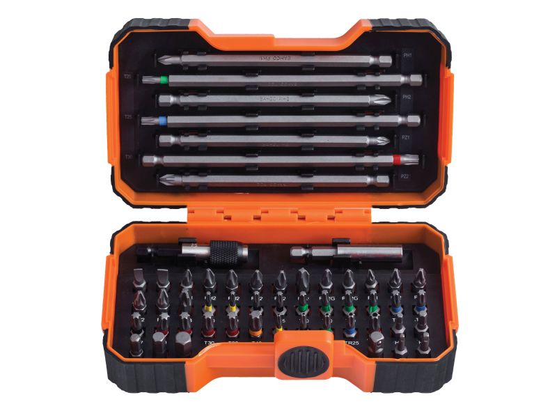 the bahco 59/s54bc colour-coded bit set contains a wide selection of bits suitable for universal use. each bit is made from high-performance alloy steel. supplied in a durable carry case.