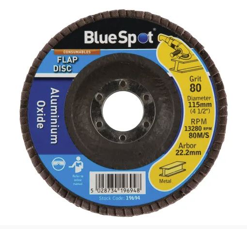 Blue Spot Sanding Flap Discs are made from aluminium oxide and are suitable for most angle grinders.