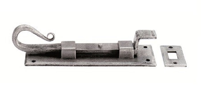 A cranked style door bolt individually hand forged using traditional blacksmith methods. The upraised formed pull handle is curled in the shape of a shepherds crook giving a positive grip in use. The rustic old fashioned styling is more suitable for period properties. To create this unique finish, it is electro plated and then stove lacquered making it extremely durable both internally and externally. If a natural metal look with a virtually maintenance free finish is required, then this pewter effect is the logical choice.
