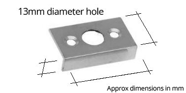 Angled receiver for necked/straight shoot bolt or flush bolt. 13mm diameter hole.