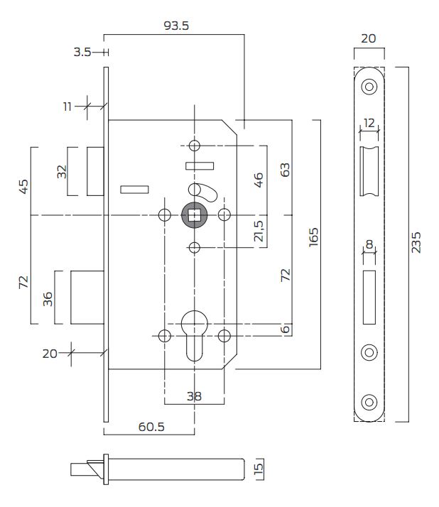 Function – Outer lever retracts latch – inner retracts latch and deadbolt. Cylinder throws deadbolt and retracts latch and deadbolt.