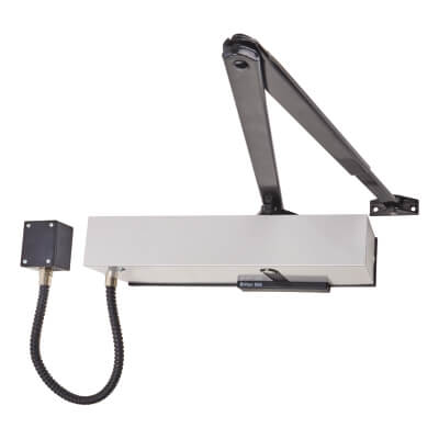 Briton 996 Electromagnetic Hold Open / Free swing Closer 24Vdc with Backcheck, Fixed Size 3. Applications Fig.1 ONLY.Finish: Silver wih black arm.