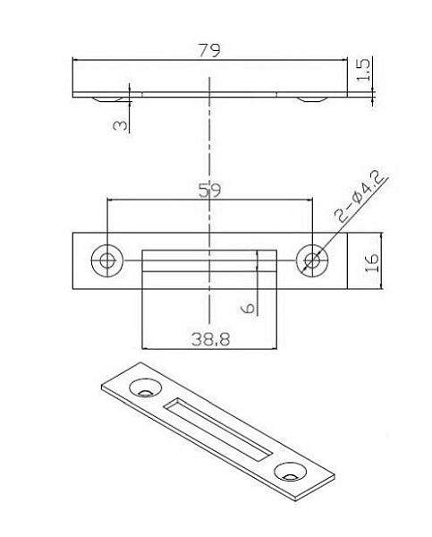 Flat strike plate to be used with budget locks.Finish: Bright Zinc Plated.