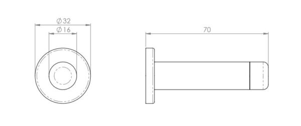 Cylinder pattern door stop on rose, skirting or wall fixing (70mm overall).