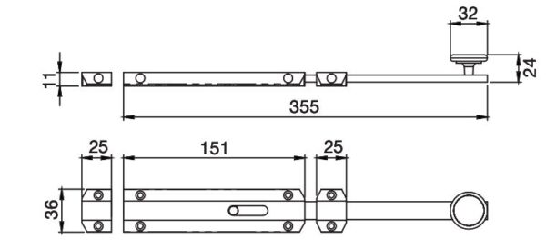 Architectural extended slide bolt, comes with a selection of three strikes for use with inward and outward opening doors ensuring versatility in various applications. Extended version of the standard surface bolt. Handle extends to 355mm total length. Satin chrome finish.