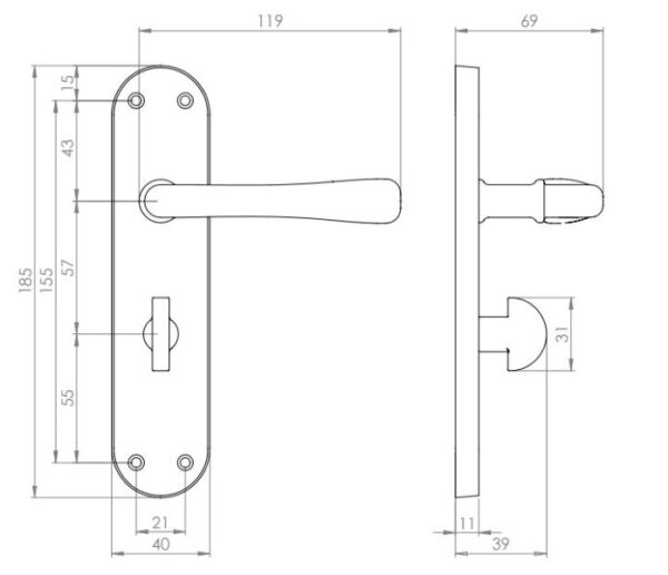 Plain, shaped backplate with rounded ends. A smooth rounded lever narrowing slightly in the middle for an easy and comfortable grip. Comes with a 10 year mechanical guarantee and is Fire door rated. Suitable for domestic and commercial use.