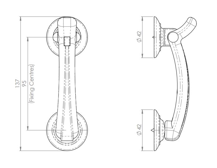 A chunky smooth line door knocker mounted on a two round roses. The knocker has etched lines on the front accentuating the subtle contours. A modern knocker for contemporary settings. Comes with a 10 year mechanical guarantee.