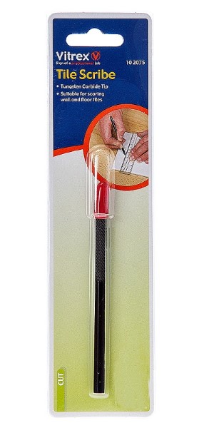 Great tool is for marking tiles before cutting. Firmly score tile along straight edge. Repeat on heavily glazed tiles. Lay tile face up with raised straight object under neath tile in line with score mark.