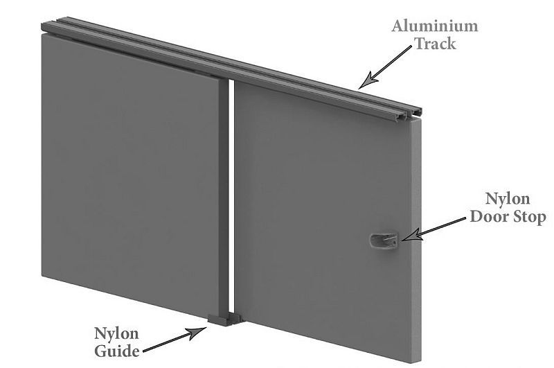 Top hung system for wardrobes, cupboards and similar doors, single or multiple runs of track.