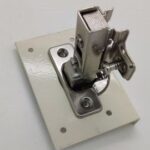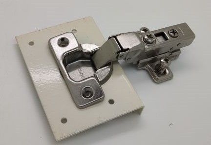 The plate is fixed to the current hinge mount, ensuring the hinge is firmly fixed to the door.