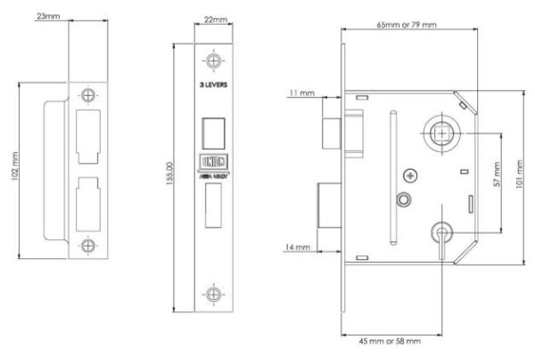 Contract 3 Lever Sashlock 67mm (2.5in)