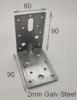 Heavy duty corner brace 90x90x60x2mm. Galvanised.