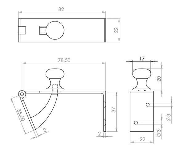 Counter Flap Catch.Size: 85mm.Finish: Polished Brass.