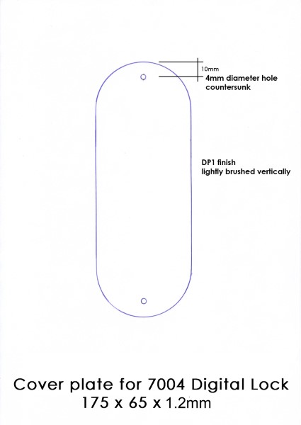 Cover plate for use after the removal of Unican Kaba 7004/7104 series digital lock. 1.2mm brushed stainless steel. 175 x 65mm.