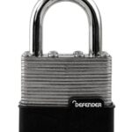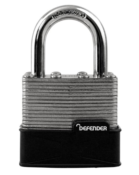 This hard wearing Laminated Defender Padlock features an individually plated laminated steel body which protects from weather damage and a hardened steel shackle which protects against saw and bolt cutter attacks, as well as a bumper to protect from scuffing. It is ideal for external applications and comes with a 2 year manufacturer’s guarantee as standard.