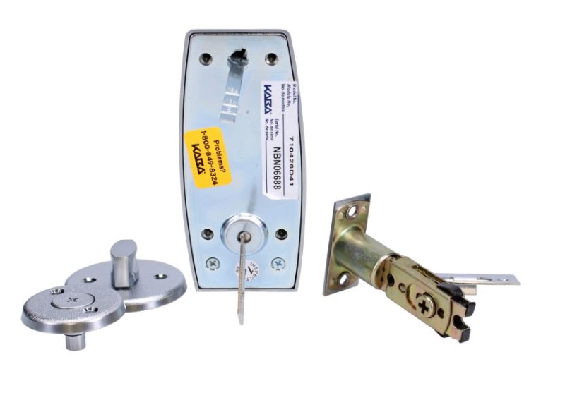Suitable for wood and metal doors. Deadlocking latch. Door thickness: 35-57mm.