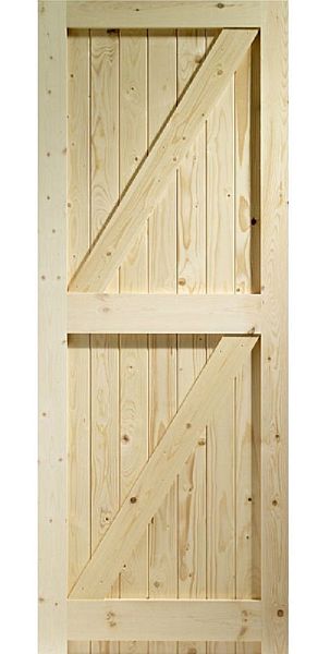Softwood framed, ledged and braced door. Mortice and tenoned. 1981x838x45mm.