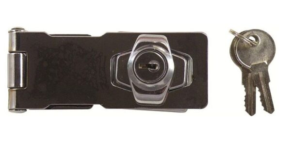 Integrated locking hasp. 75mm (closed) x 32mm.