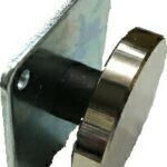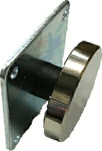Electro magnetic clamp with black plastic housing and integrated interrupt button.