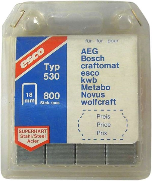 Esco Staples Type 530. 18mm long. Pack of 800.