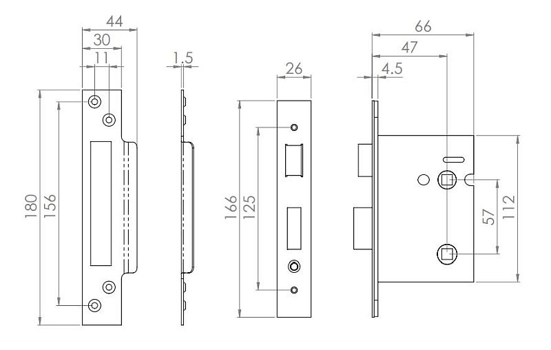 Bolt Through Lock (38mm Bolt Holes) To Suit Bolt Together Door Handles