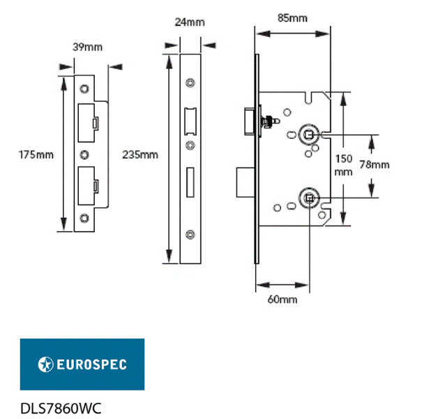 DIN Standard Mortice Bathroom Lock With 60mm Backset & 78mm Centres, T/Turn Follower 5mm. 10yr Mechanical Guarantee. Conforms to BS EN 12209. Certifire Approved. Suitable for FD30/60 rated fire doors. Finish: Satin Stainless Steel. Category Of Use Grade 3. Please note, this lock has Radiused forend and faceplate