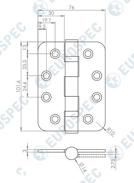 Grade 13 Ball Bearing P Hinge, Radius. Max Load 120kg. Comes with a 10 year mechanical guarantee and are fire door rated. Matt Bronze finish on Type 201 Stainless Steel.