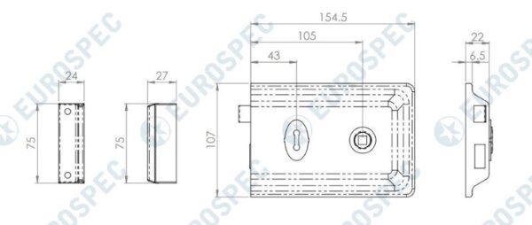 EUROSPEC RSE8064PC Rim Lock 155x105mm Polished Chrome (EACH)