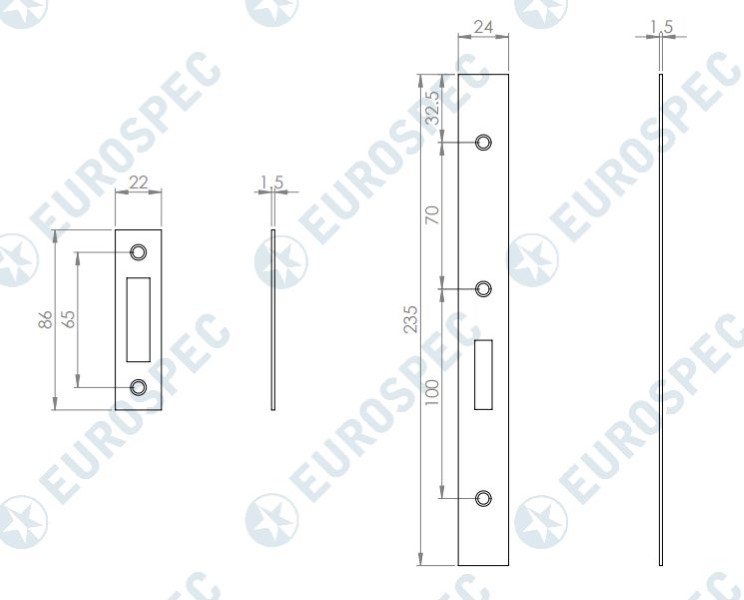EUROSPEC Square Faceplate & Striker PVD (EACH)
