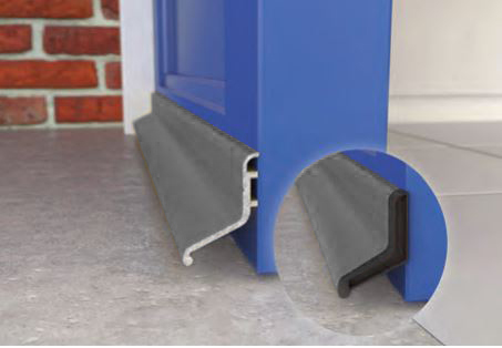 Small rain deflector for the bottom of an exterior door. 914mm. Aluminium mill finish.