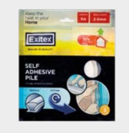 Self-adhesive polyproplene pile. 5mm thick x 7mm wide. 5m roll. White. For all types of hinged doors and windows.