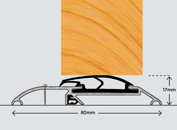 Mill finish aluminium easy access threshold. Suitable for inward and outward opening doors with moderate exposure. Part M – approved.