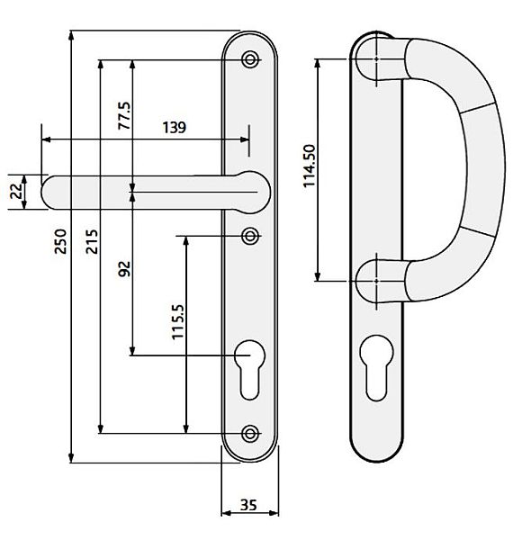 The FAB & FIX Kensington 92PZ UPVC Furniture is non-handed and features an external D-ring handle with an internal lever. The solid die cast zinc construction and heavy-duty spring cassette provide a sturdy feel, while the handles meet the highest technical standards, conforming to BS EN 1670:2007 Grade 5, plus endurance testing in excess of 200,000 cycles. The handles require an additional screw and spindle pack (M6 screws & 8mm spindle compatible).