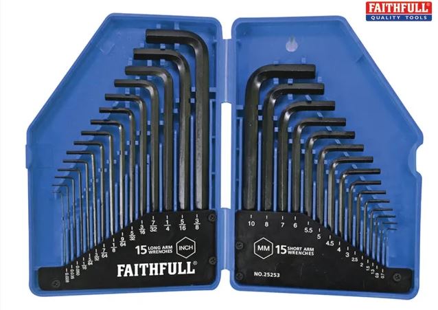 The Faithfull Hexagon Keys are six sided wrenches for driving socket screws which are used mostly on machinery for fastening parts tightly together.
