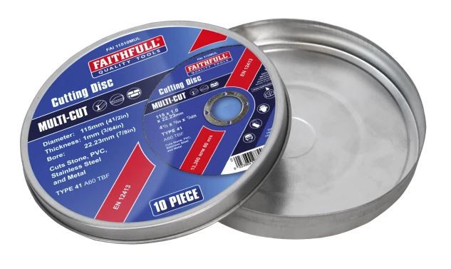 These Faithfull Multi-Cut Cutting Discs will cut a wide range of materials used in the construction and fabrication industries. At only 1mm thick they are able to provide a fast cutting action with less waste and dust.