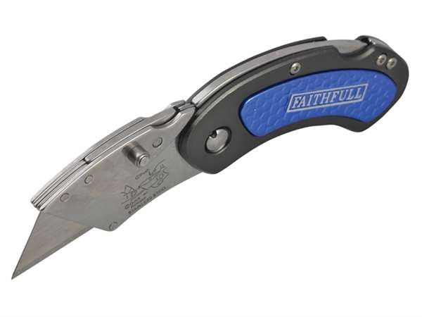 The Faithfull Utility Folding Knife is a compact sized folding pocket knife with a blade locking system and quick blade change. It has features a stainless steel blade holder and a handy belt clip.